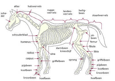De botten van hun benen zijn verschillend van die van een mens!. Hier een voorbeeld: het lichaamsdeel dat de 'knie' van een paard genoemd wordt bestaat uit handwortelbeenderen. Die juist overheen komen met de pols van de mens. Het spronggewricht komt overheen met de botten uit de enkel en hiel van de mens.